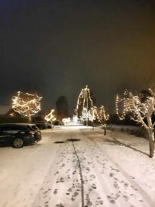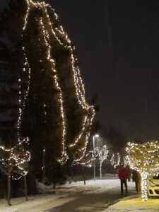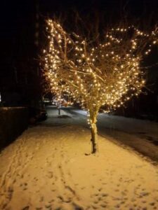 Hej Mia – det var for at vise lidt julestemning fra foreningen. Til din orientering kan alle gå forbi, når der tændes. Og det forhold at vejens beboere har investeret i at sætte julelys på vejens træer falder vist ikke under kategorien indspist.